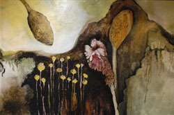 of paintings and sculpture. Higdon, whose conceptual work flirts with the darker