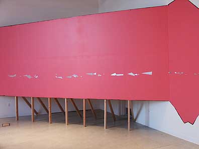Nagy's construction consists of flat planes of electric pink paint. This coating